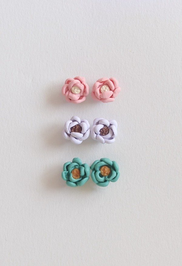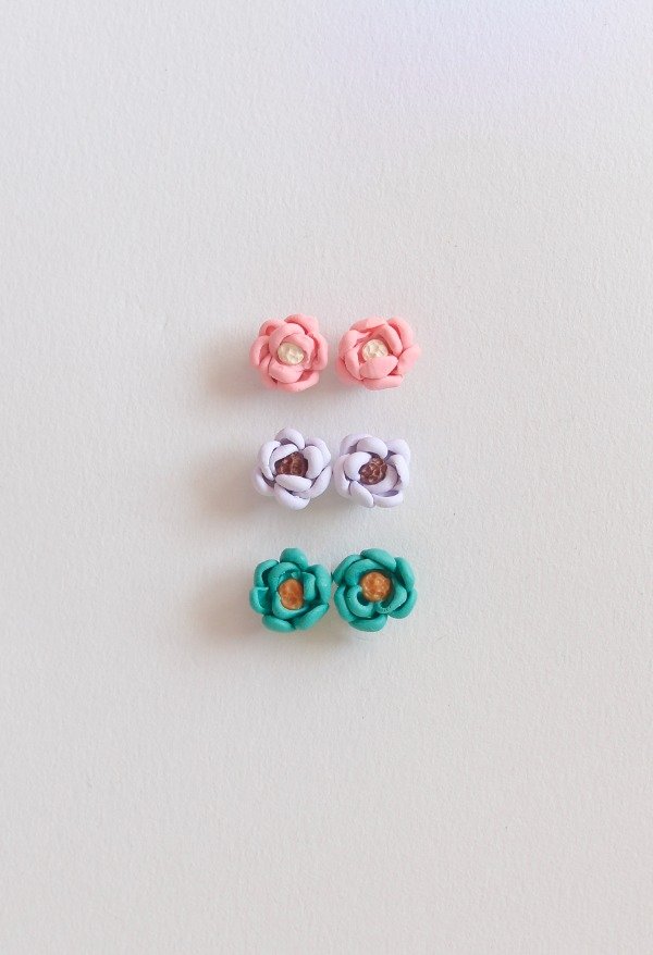 Aros de arcilla polimérica. Tienen pasador de acero quirúrgico y topecito de silicona.